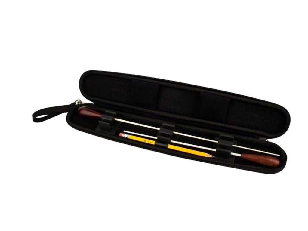 Het Protec BC16 etui heeft ruimte voor twee dirigeerstokken tot 16 " en is voorzien van een stijlvolle weerbestendige nylon buitenkant met aangepaste ritsen en een lederen accent. Het interieur is voorzien van houten lambrisering voor ondersteuning van de dirigeerstok, zachte voering, potloodlus, 3 verstelbare steunen en 2 zachte pads om te voorkomen dat het stokje verschuift.