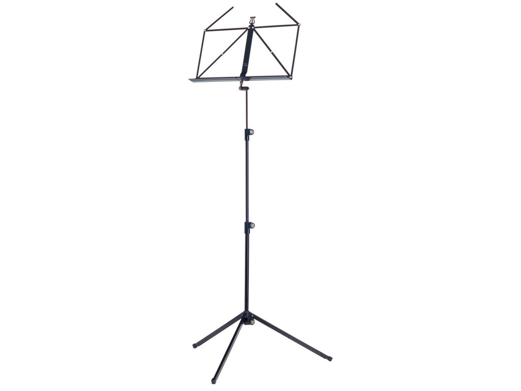 De K&M 100/1 Music stand is de klassieke lessenaar. De lessenaar is gemaakt van staal en is powder-coated om het staal te beschermen tegen roest, deze verflaag is resistent tegen krassen. De standaard is opgevouwen maar 49 cm lang.
