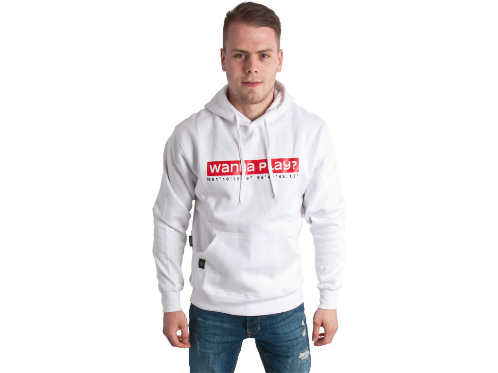 Hoody Adams Wanna play? Wit / Rood size S