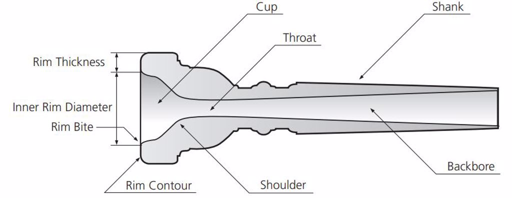 Hoe werkt het mondstuk van een trompet, trombone of bastuba? Je weet misschien al dat hier de trilling wordt gestart door de lippen die uiteindelijk voor het geluid zorgt, maar wat verschilt er onderling in mondstukken? Hieronder bespreken we verschillende onderdelen van een mondstuk, zoals de cup, de boring en rand van het mondstuk, en de invloed van deze onderdelen op de klank.
