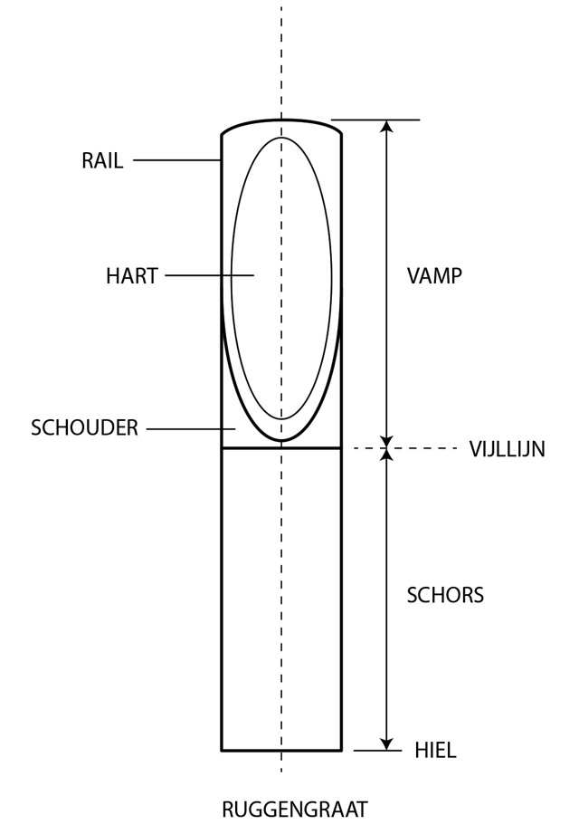 De vamp van een riet kan worden opgedeeld in verschillende delen: