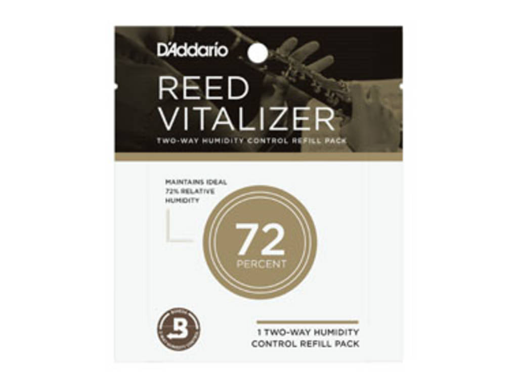De Reed Vitalizer van D’Addario biedt onderhoudsvrije rieten opslag. Het gepatenteerde Humidipak technologie gebruikt tweezijdige vochtigheids controle om het kromtrekken van rieten te voorkomen en om de rieten stabiel te houden in alle weersomstandigheden. De Reed Vitalizer Humidity control packs werken voor 45 tot 60 dagen. Wanneer het pakje hard wordt, kunt u het weggooien en vervangen met een nieuw pakje.