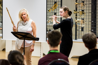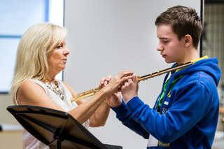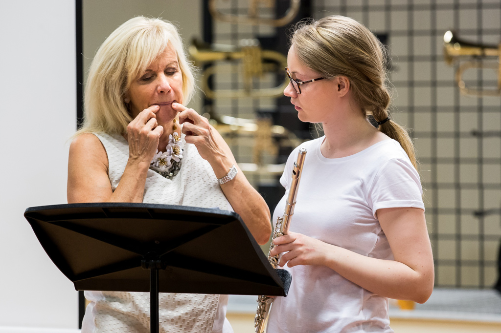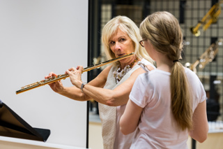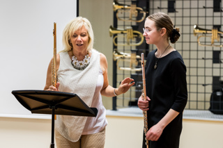 Actively pursuing her love of teaching, Lady Galway dedicates much of her time to working with the younger generation.  During the 10 day ‘Galway Flute Festival’ held each summer with her husband in Switzerland Lady Galway works with students of all levels offering tips and advice on flute playing, performing and career management.  Through these, and the numerous other classes they hold worldwide throughout the year, they are able to have a hands on mentoring to the students they meet throughout their work.