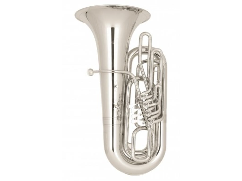 Bes Bastuba Miraphone 289-A, 4 cilinder, 47 cm beker met nieuwzilver krans, corpus goudmessing, lak, met gigbag