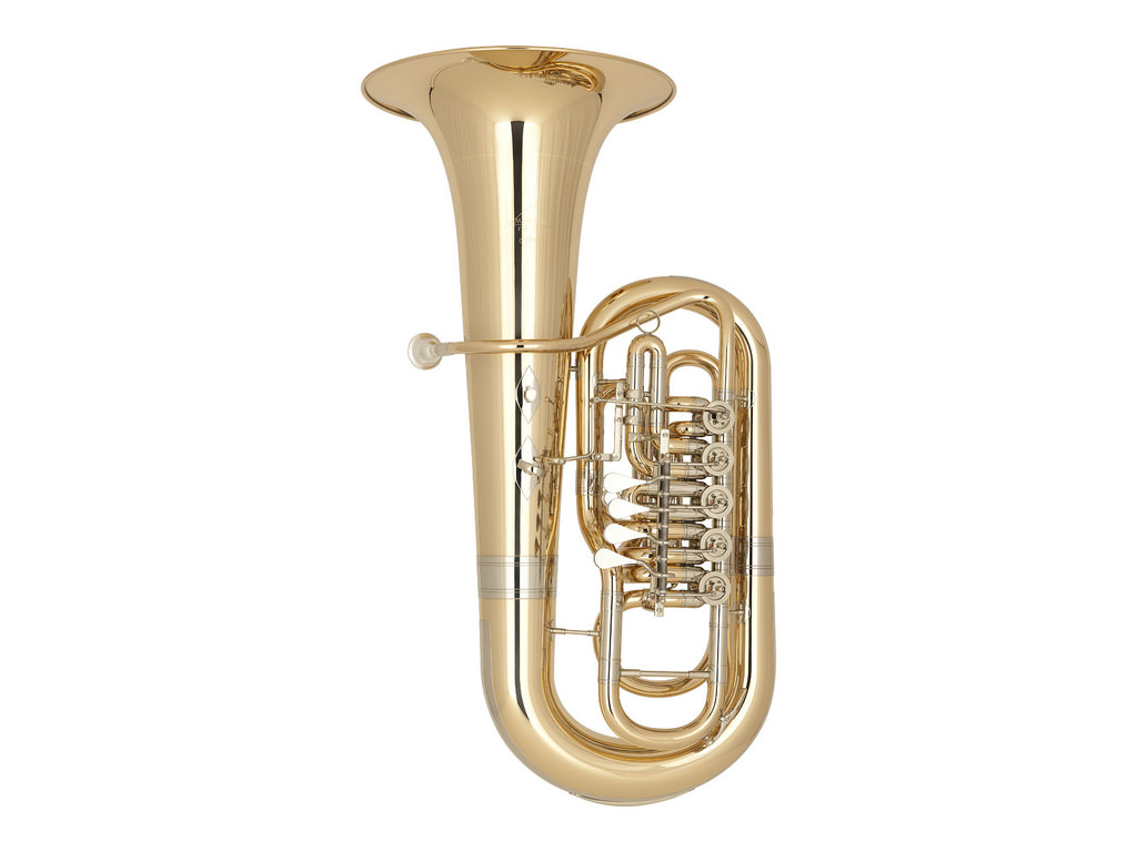 F Bastuba Miraphone 281-B model Firebird, 40 cm beker, 5/4, goudmessing, lak, met gigbag