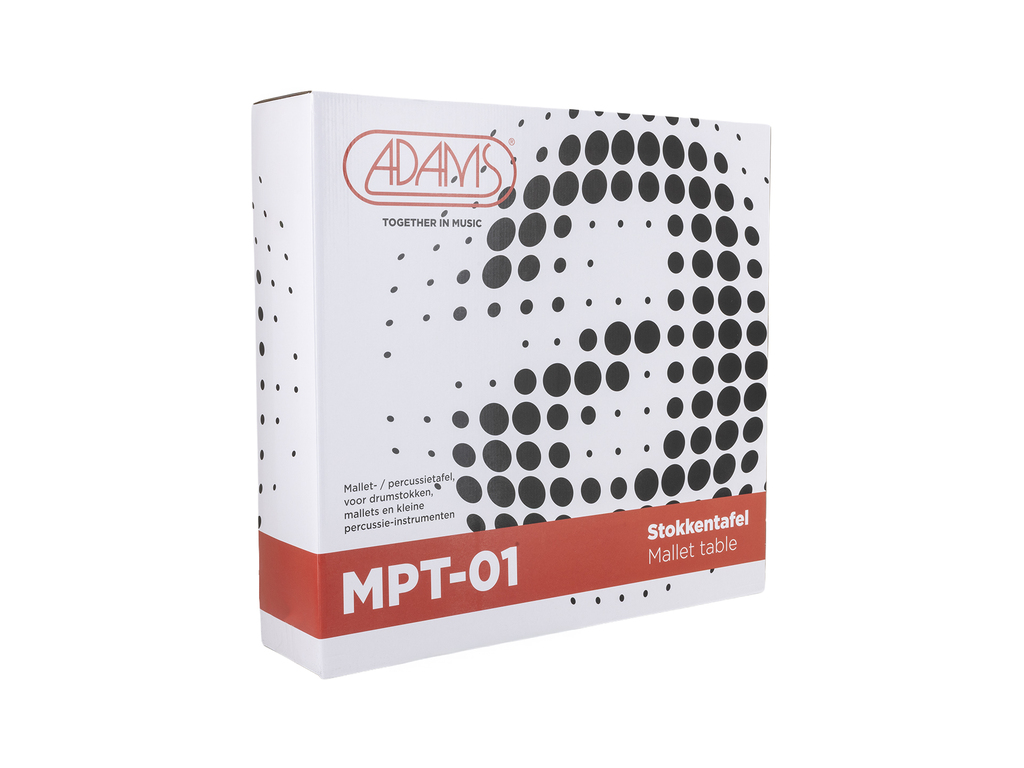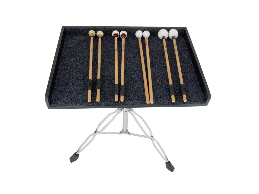 De Adams MPT-01 stokkentafel is een onmisbare hulp voor de paukenist. Ideaal om pauken mallets, kleine percussie-instrumenten en een stemapparaat overzichtelijk en direct binnen handbereik te plaatsen tijdens repetities en concerten. Zo blijf je georganiseerd en volledig gefocust op je spel.