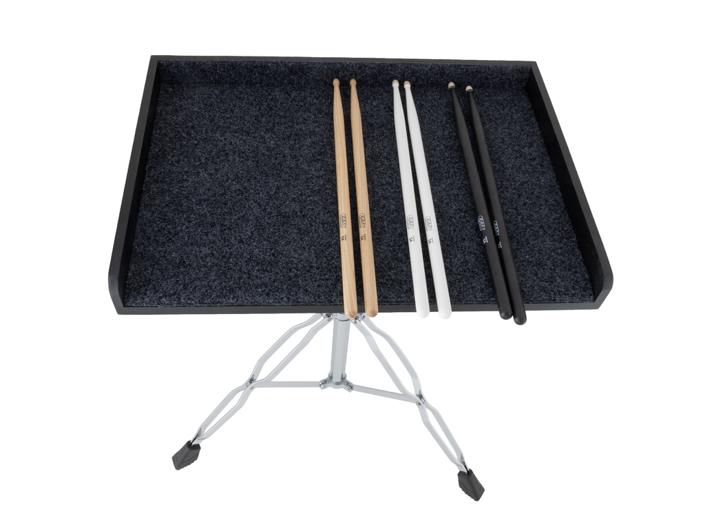De Adams MPT-01 stokkentafel is een handige uitbreiding voor je drumset. Ideaal om je laptop met backingtracks of clicktrack binnen handbereik te houden, snel van stokken te wisselen of shakers en andere percussie-instrumenten direct klaar te hebben tijdens het spelen.
