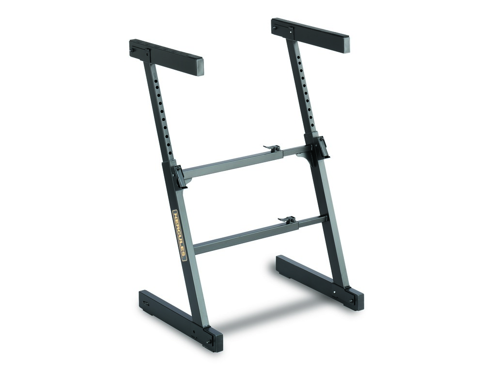 De Hercules KS400B Autolock Z-Keyboard Stand heeft een systeem dat het frame vouwt in een stuk en heeft ook een borgpen systeem om de standaard gemakkelijk in hoogte te verstellen. Gemaakt uit staal met rubberen voeten die ervoor zorgen dat je standaard altijd stabiel staat.