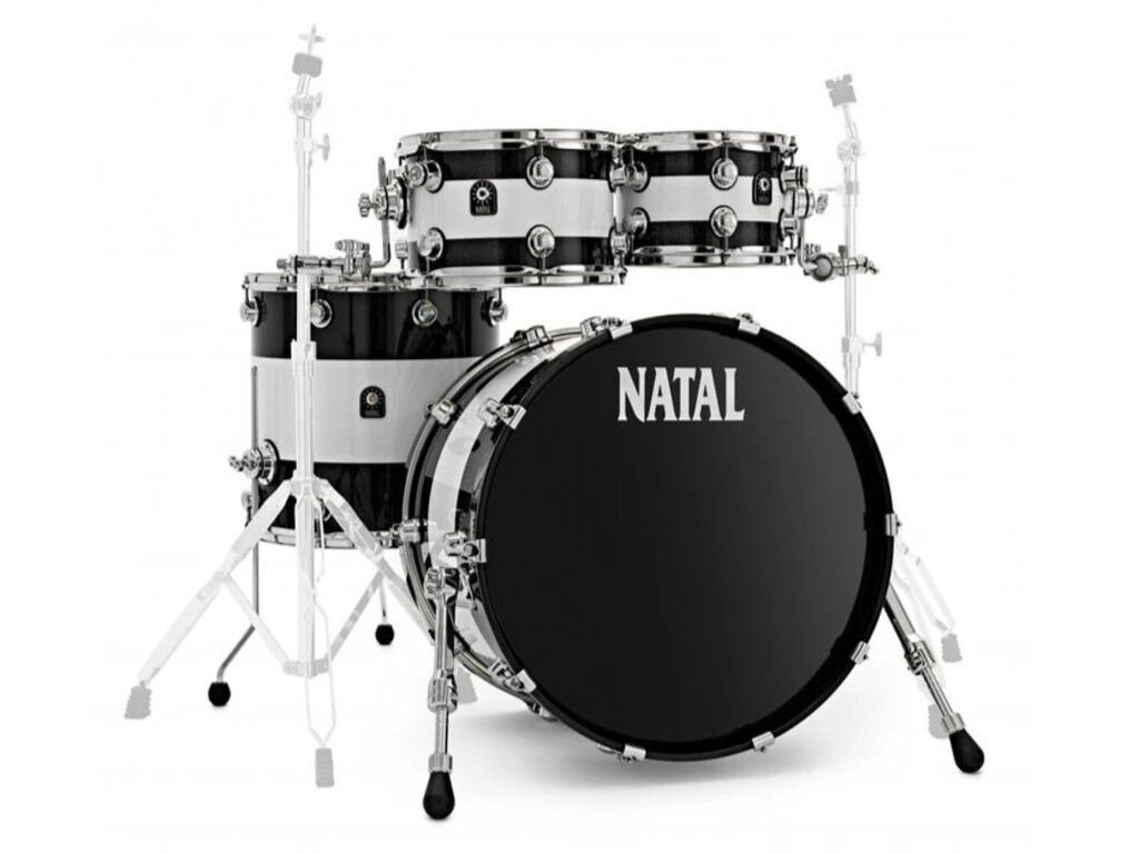 Shell Satz Natal Café Racer Rock, KTW-UFX-BKW1, Black Sparkle with White Stripe, 22", 10", 12", 16", Chrome hardware