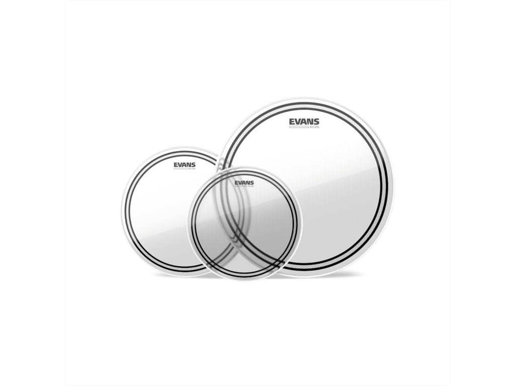 Das Evans EC2 Clear Tom Pack enthält drei Trommelfelle. Jedes Fell besteht aus zwei Lagen à 7mil und bietet eine optimierte Ansprache, Klangfarbe und Sustain-Länge. Der SST (Sound Shaping Technology) Edge Control Ring auf der Unterseite sorgt für einen ausgewogenen und kontrollierten Klang.