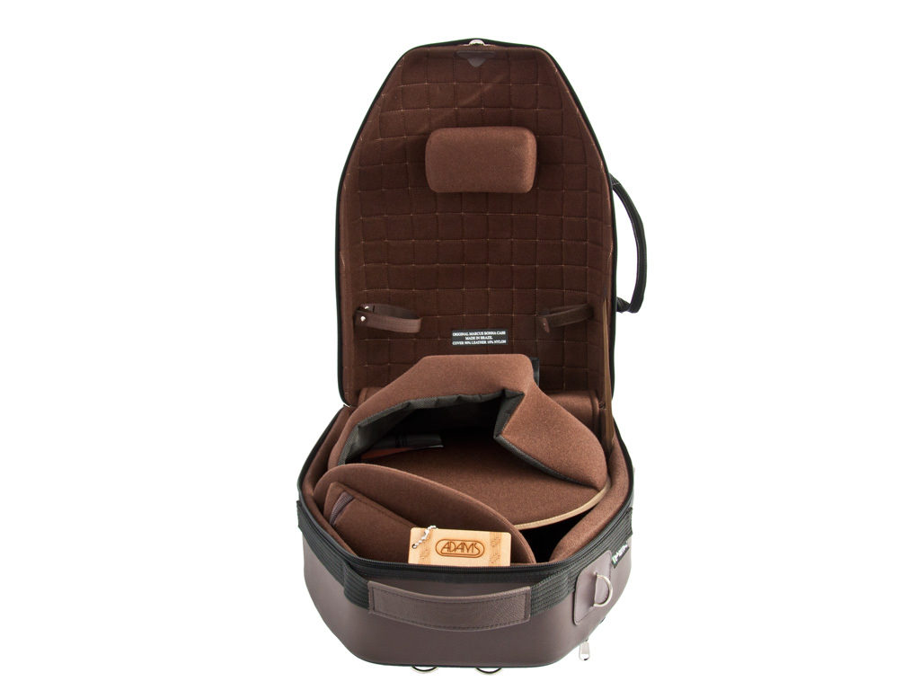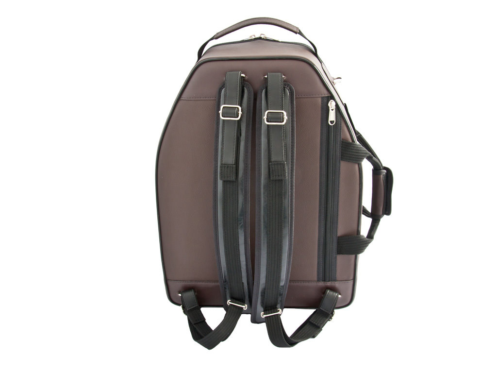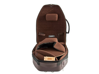 These Cases by Marcus Bonna are specifically designed for French horns. The case is made from a sturdy fiberglass shell covered in durable leather. The inside is covered with 1cm thick foam and a soft fabric lining. A French horn will fit perfectly with 4 belts, pouch for the bell and 6 modular blocks.