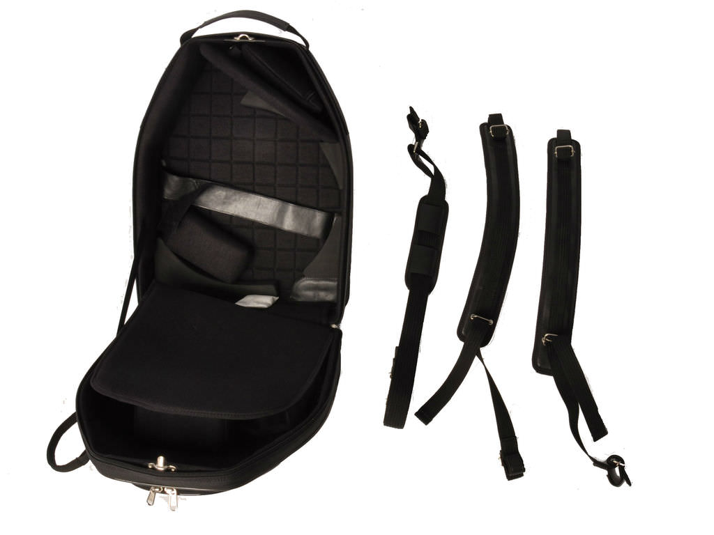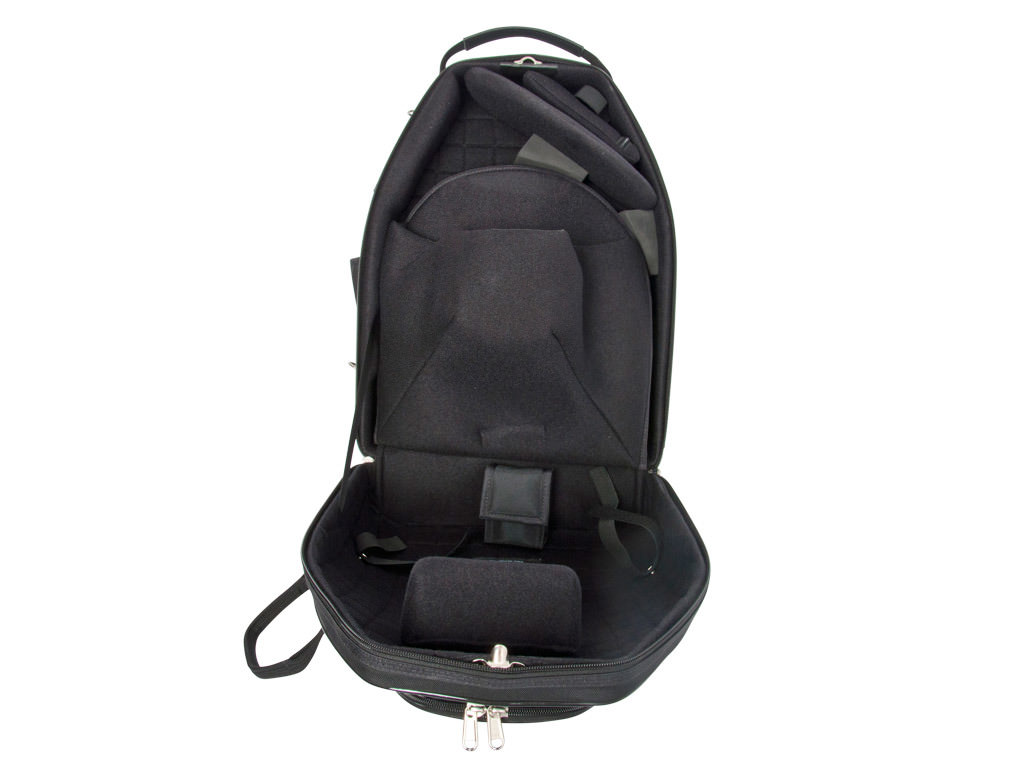 These Cases by Marcus Bonna are specifically designed for French horns. The case is made from a sturdy fiberglass shell covered in durable nylon. The inside is covered with 1cm thick foam and a soft fabric lining. A French horn will fit perfectly with 4 belts, pouch for the bell and 6 modular blocks.