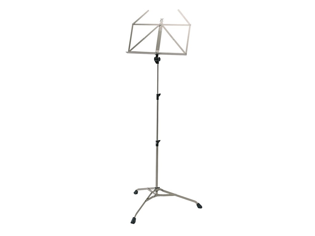 The K&M 107 Music stand is an extra steady music stand. It has a comfortable height adjustment. The stand is made from steel and has been nickel plated. With its broad legs and rubber feet this stand stands steady.