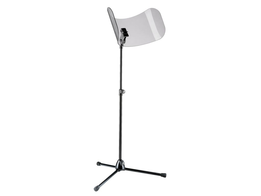 De K&M 11900 Sound insulation stand is ontwikkeld als akoestisch controlepaneel voor solisten en voldoet aan Europese eisen. Het controlepaneel kan aan allebei de kanten gebruikt worden als concaaf of convex paneel. The standaard zelf is van staal met een acryl transparant paneel.