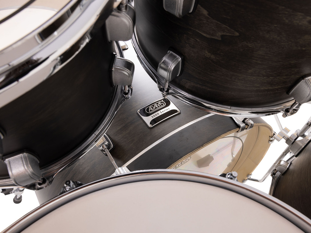 Drumstel Adams 3000 A350HCH Black Matt, 20", 10", 12", 14", 14", chrome hardware, inclusief hardware en cymbal set