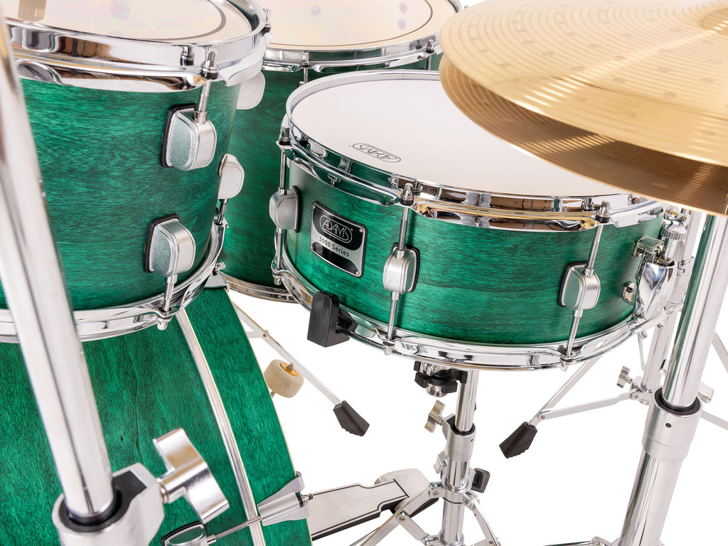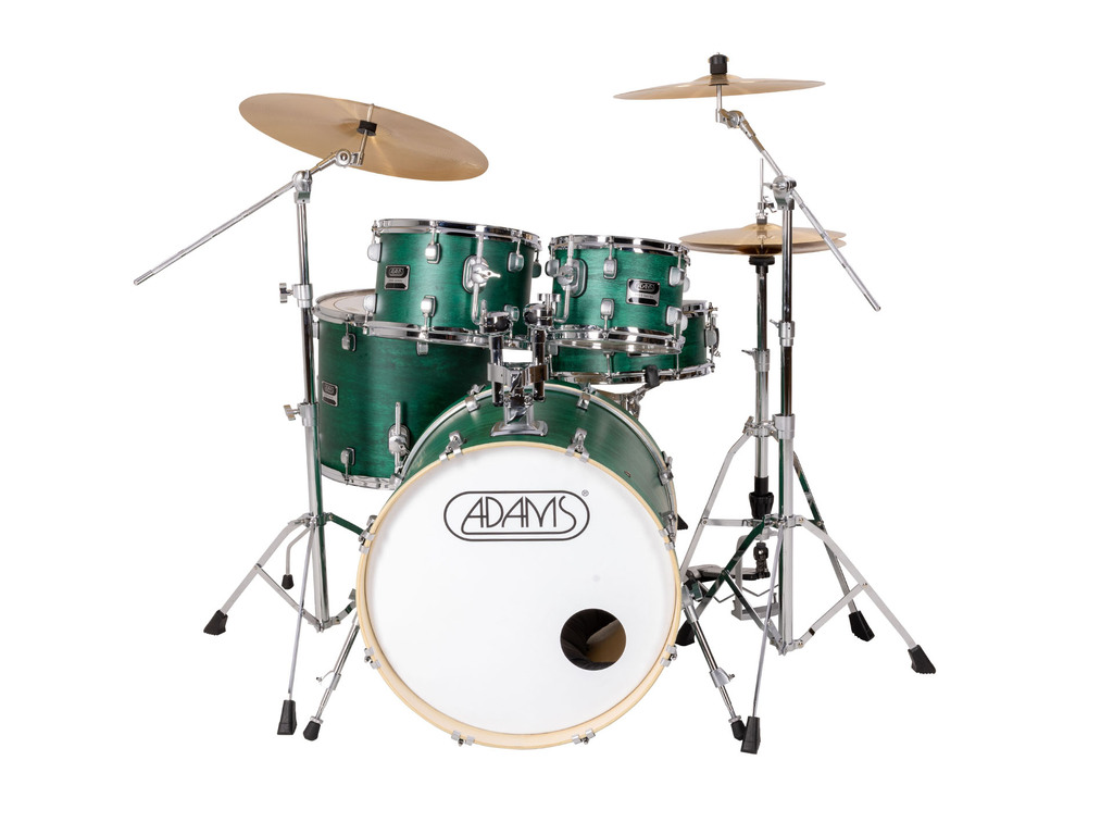 Drumstel Adams 3000 A350HCH Green Matt, 20", 10", 12", 14", 14", chrome hardware, inclusief hardware en cymbal set