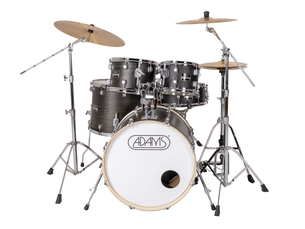 Drumstel Adams 3000 A352HCH Black Matt, 22", 10", 12", 16", 14", chrome hardware, inclusief hardware en cymbal set