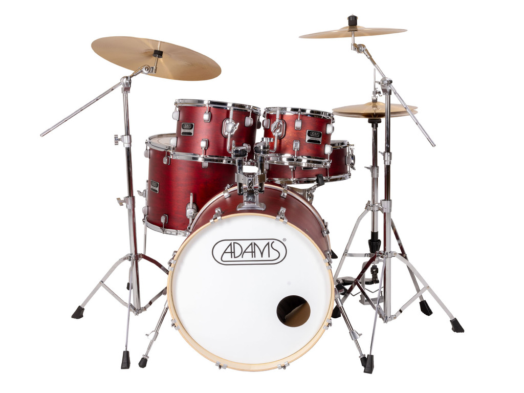 Drumstel Adams 3000 A352HCH Red Matt, 22", 10", 12", 16", 14", chrome hardware, inclusief hardware en cymbal set