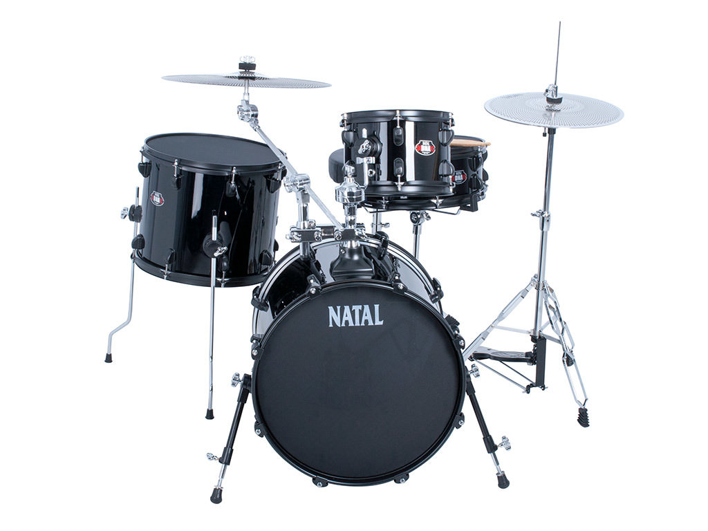Drumstel Natal DNA Stealth K-DNB-F18-BKS, 4-delig, 18x16",10x7", 14x12",13x5.5", low volume, inclusief hardware en cymbals 14"-16"