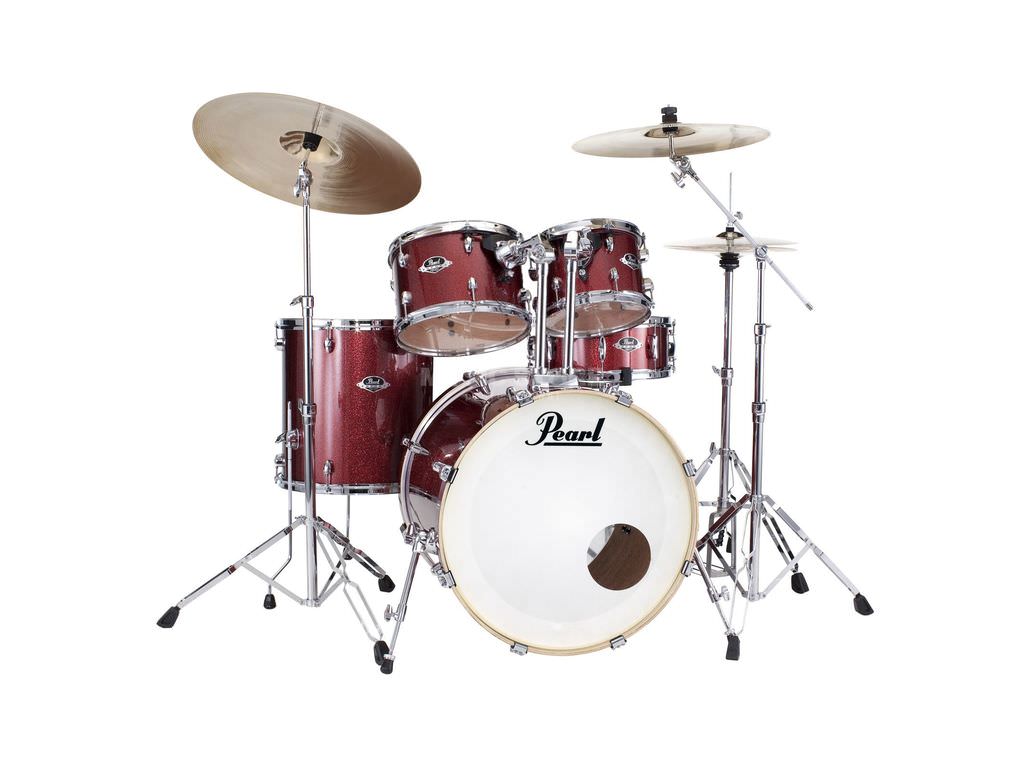 Drumstel Pearl Export EXX705NBR/C704 Black Cherry Glitter, 20", 10", 12", 14", 14", studio set, inclusief hardware en Cymbals