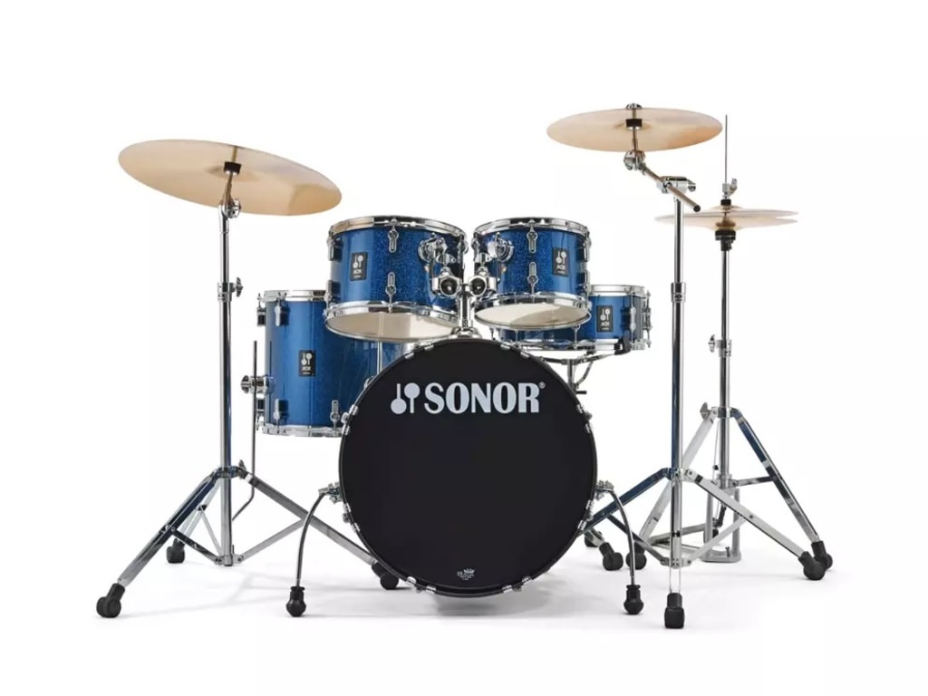 Drumstel Sonor AQX Serie Stage Set BOS Blue Ocean Sparkle, 22", 10", 12", 16", 14", incl hardware en cymbals