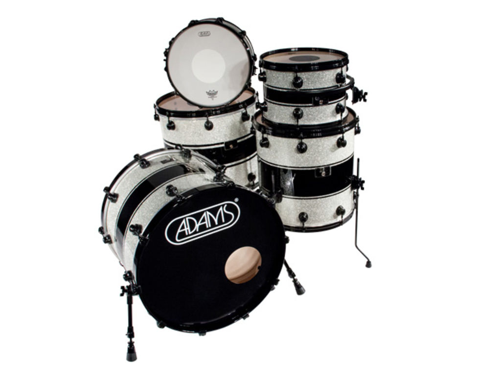 Shell Set Adams 8000 Dpresent Extra Savage 22 Rock, 22", 13", 16", 18", 14", Zwart HW, Silver Sparkle Black Racing Stripe