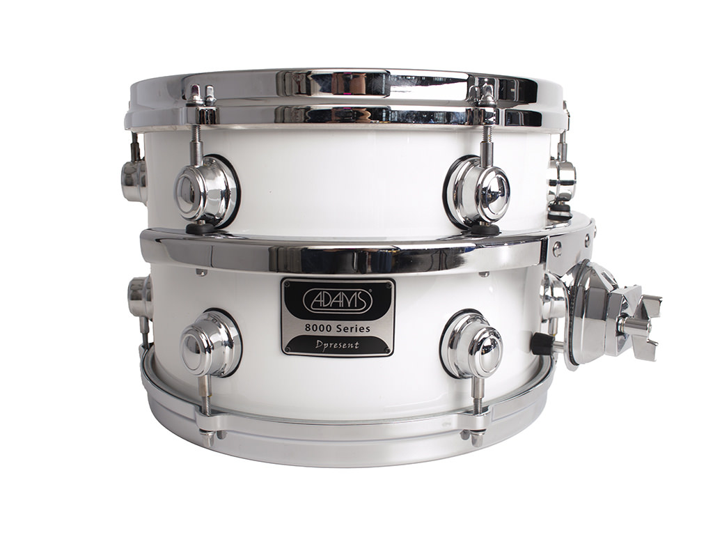 Shell Set Adams 8000 Dpresent Savage 22 Rock, 22", 10", 12", 14", 16", 14", Chrome Hardware, White Gloss, zonder vellen