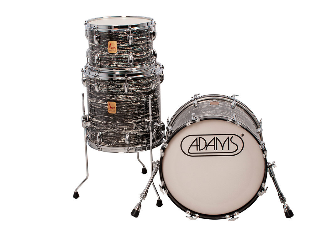 Shell Set Adams Vintage Bopset 18", 12", 14", Chrome Hardware Old Style Logo Black Oyster