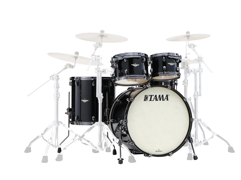 Shell Set Tama Starclassic Maple MA42TZBNS-PBK Piano Black, 22", 10", 12", 16", Zwart Nikkel Hardware