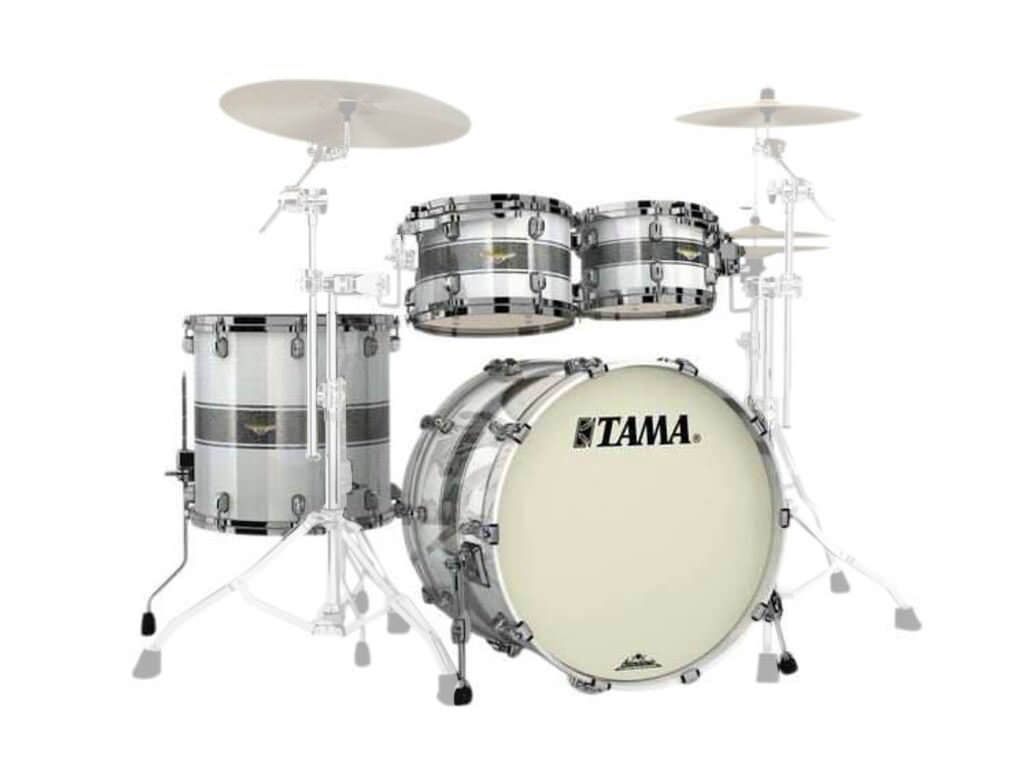 Shell Set Tama Starclassic Maple MA42TZBNS-SSR Silver Snow Racing Stripe, 22", 10", 12", 16", Zwart Nikkel Hardware