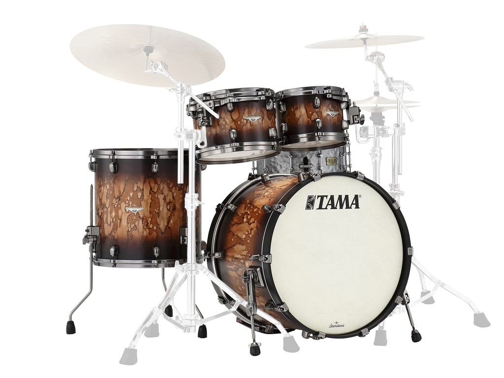 Shell Set Tama Starclassic Maple MA42TZUS-MBB Molten Satin Brown Burst, 22", 10", 12", 16", Smoked Zwart Nikkel Hardware