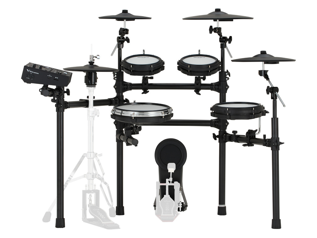 De TD513 prioriteert professionele features terwijl de prijs toegankelijk blijft door hoogwaardige analoge pads. De V51 module met drie digital pad inputs, twee dedicated Direct Outs, zes fysieke faders en SDHC-memory slot vormt een semi-professionele basis. De module wordt uitgebreid met de KD-10 kick, de 12” PD-12P snare, twee 8” PD-8H rack toms, een 10" PD-10H floortom. Daarnaast bevat de set 4 cymbalpads: een VH-10 hi-hat, een 12” CY-12C-T crash, een 14" CY-14R-T crash en een CY-16R-T ride.