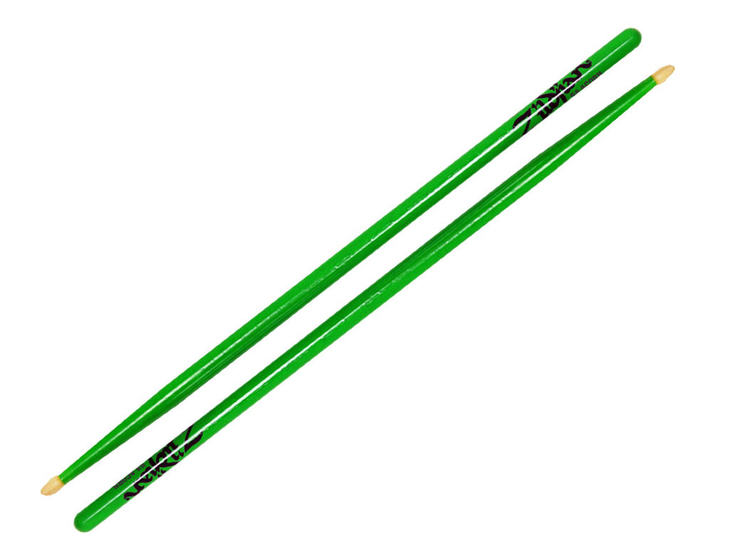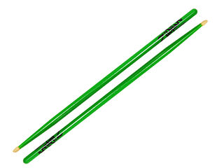 De Populaire 5A Acorn model drumstok in een selectie van nieuwe multi-layer neon kleuren. Beschikbaar in de kleuren: geel, groen en roze. Deze super vrolijke kleuren geven ook licht wanneer je ze onder black lights houdt.