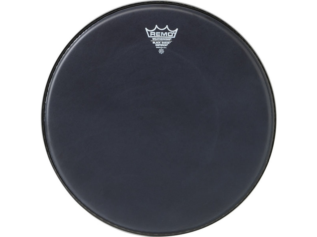 De Remo Emperor Black Suede Serie bestaat uit een dubbellaags vel van een 7.5mil ebony laag en een 7mil clear laag, welke warme tonen produceert en een zachte feel en een herkenbare matte donkere look heeft. De Emperor Black Suede drumvellen zorgen voor een vol bereik van frequenties en een warme attack. Deze vellen worden over het algemeen gebruikt voor tom en snaredrums.