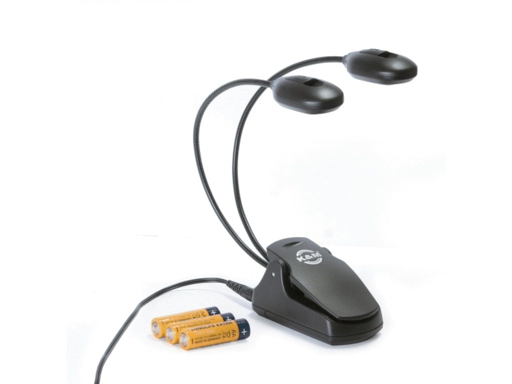 This K&M 12270 Music stand light has 2 x 4 LED lights. The two adjustable lamps provide almost all music stands with light. The light is made out of polymer and works on both batteries (3 AAA) and a power supply.