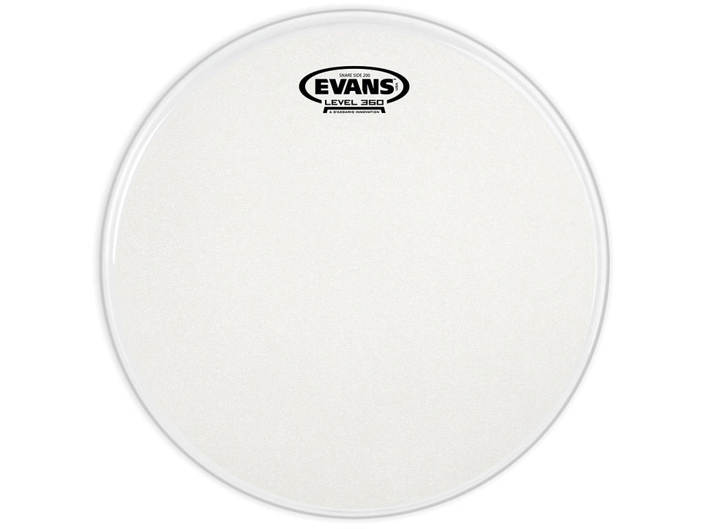 The Evans Orchestral 200 snare drum resonance head features a single ply 2mil head. The textured 2mil orchestral snare drum head provides a broad dynamic range with all populair snare strands: coiled wire, calbe, gut, nylon and all possible combinations thereof.