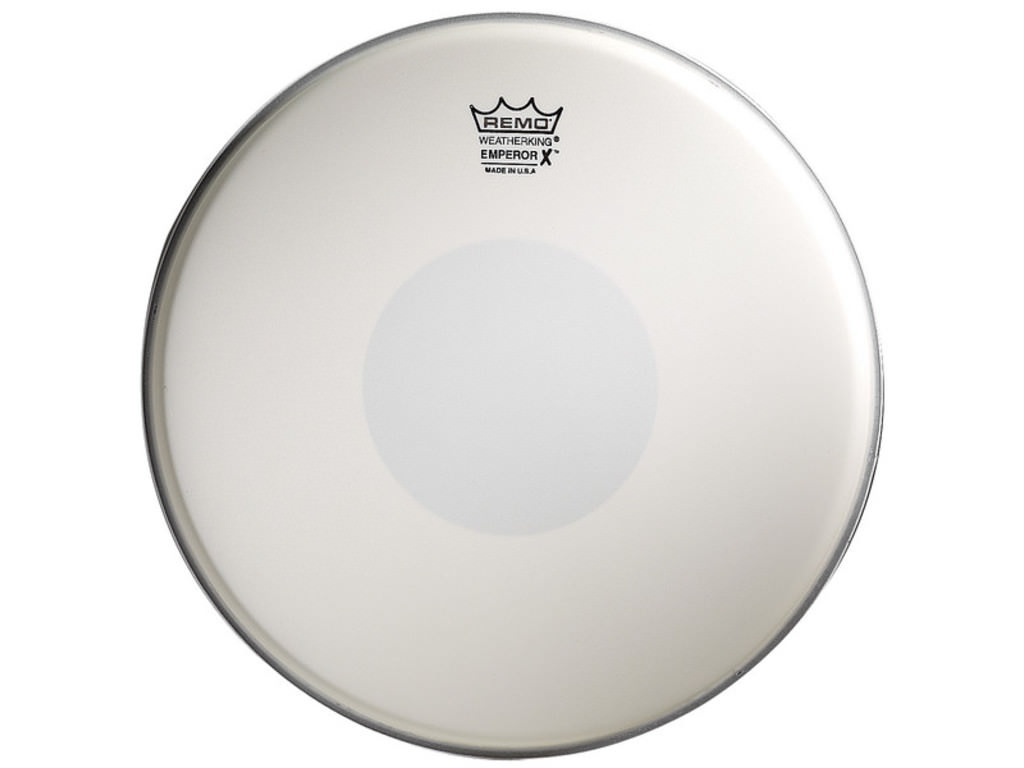 The Remo Emperor X Coated Series features a doubel layer head, one 10mil coated layer and one 5mil bottom black dot layer, which has focused mid and low tones with extreme durability. The Emperor X Coated drumheads are the world's most durable snaredrum heads.