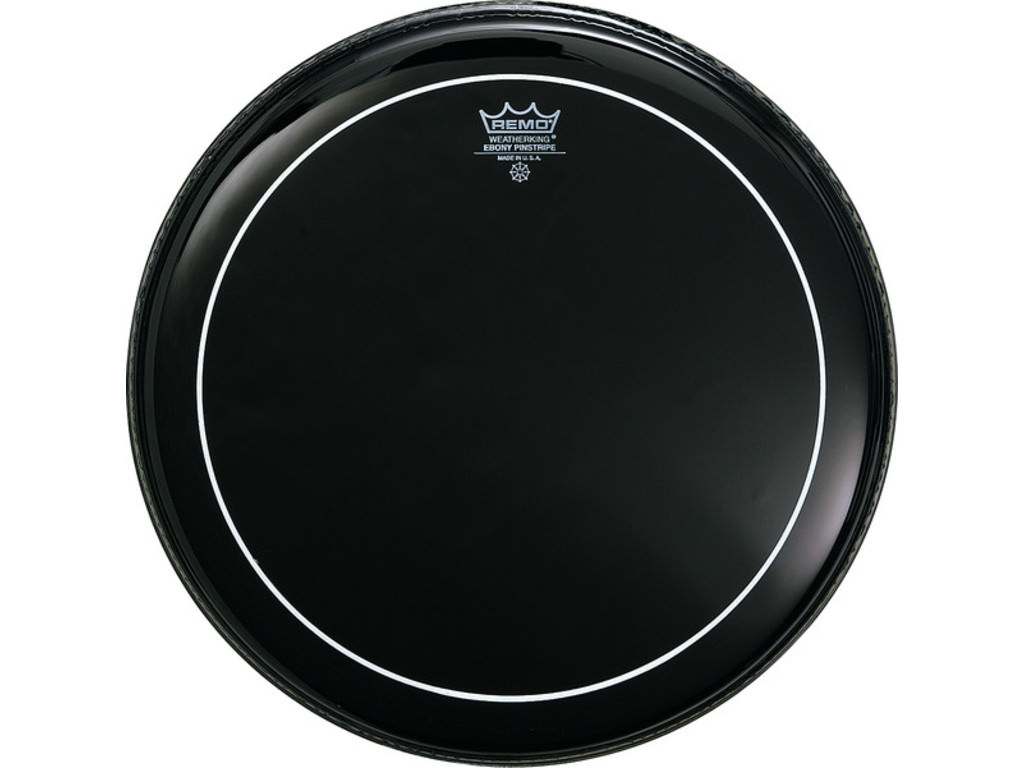 The Remo Pinstripe Ebony Series features a double layer head with 1 ply of 10mil Ebony and 1 ply of 5mil clear. The Pinstripe Coated drumheads have an overtone reducing ring applied between the 2-plies providing overtone control and increased attack.