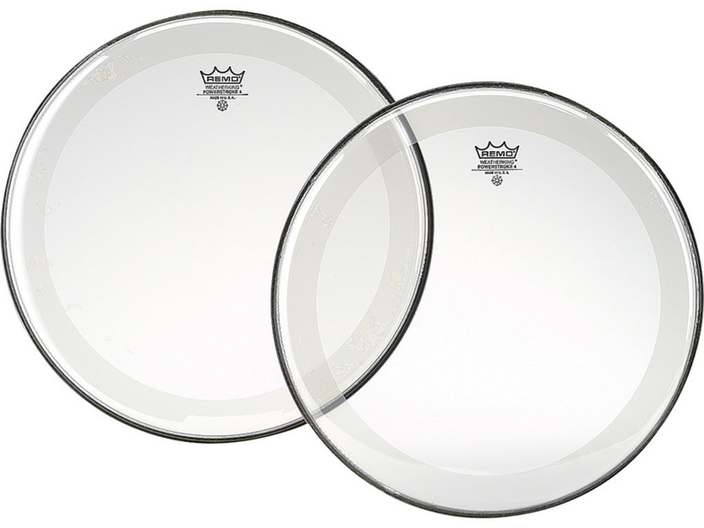 The Remo Powerstroke 4 Clear Series feature a double ply head of a 7mil layer with a 3mil inlay ring. This head provides low-end tones with controlled sustain, well defined attack and increased durability. These drumheads are ideal for when hard-hitting is required or where minimal sustain is desired.