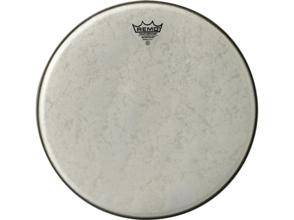 The Remo Diplomat Skyntone Series features a single ply head of a 5mil special treated layer laminated to a 3mil polyspun fiber. The head provides a warm sound and a soft attack. The Diplomat Skyntone is ideal for light concert or jazz music for a snaredrum, toms or bassdrumds. With controlleed high frequencies and dynamic sensitivity making the Diplomat Skyntone the synthetic head, which is most comparable to a traditional calfskin of all drumheads.