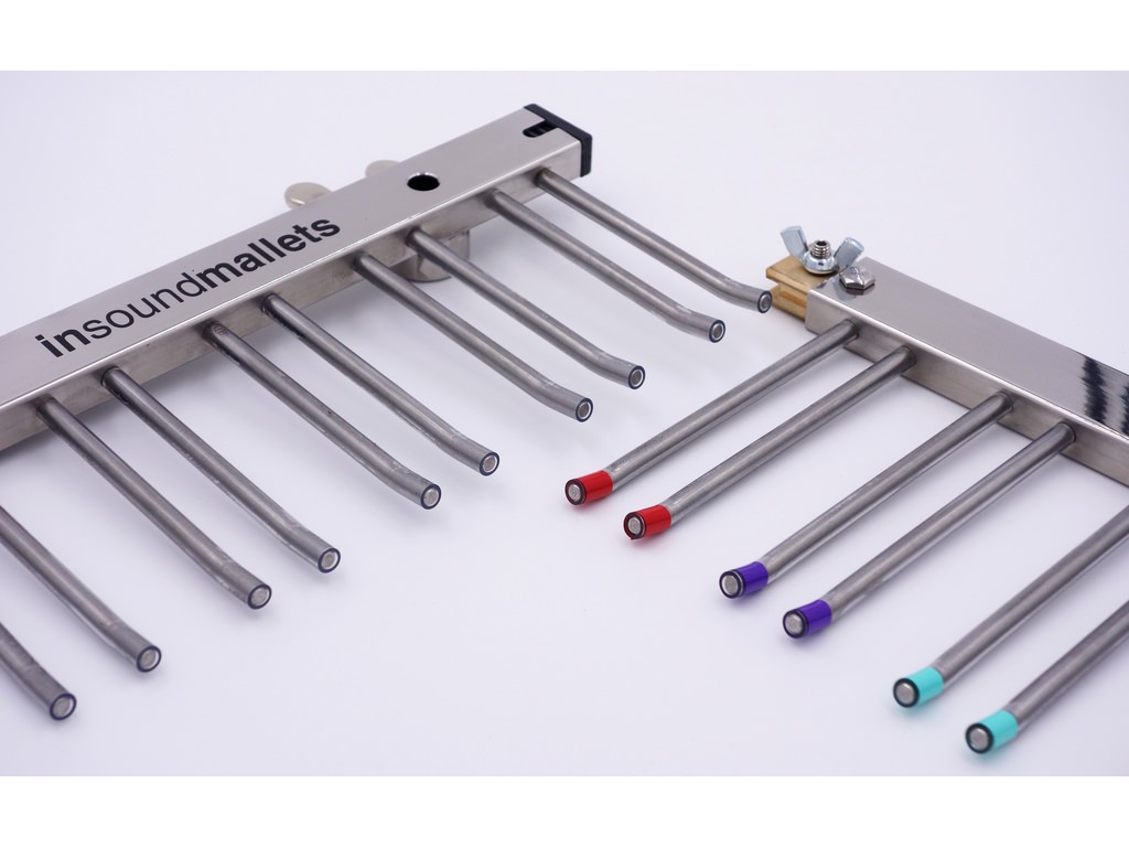 Another feature of the Rack Pro is the fast track. Insoundmallets has designed the bristles with different lengths and a splash of colour. This creates a visual effect that helps locate the right pair of sticks, aiding fast stick changes.