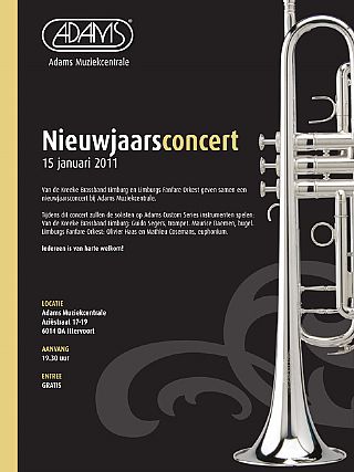 Van de Kreeke Brassband Limburg en Limburgs Fanfare Orkest geven samen een nieuwjaarsconcert bij Adams Muziekcentrale. Tijdens dit concert zullen de solisten op Adams Custom Series instrumenten spelen: Van de Kreeke Brassband Limburg: Guido Segers, trompet. Maurice Daemen, bugel. Limburgs Fanfare Orkest: Olivier Haas en Mathieu Cosemans, euphonium. Iedereen is van harte welkom! Datum: 15 januari Aanvang:19.30 uur Locatie:Adams Muziekcentrale, Ittervoort Gratis te bezoeken!