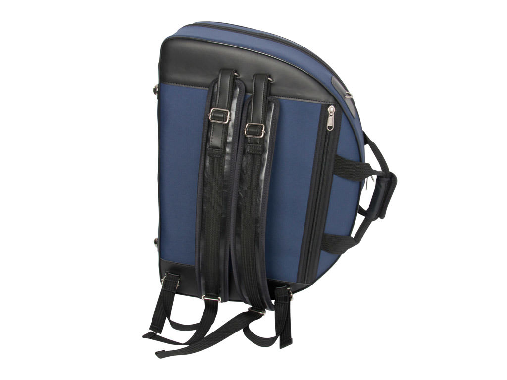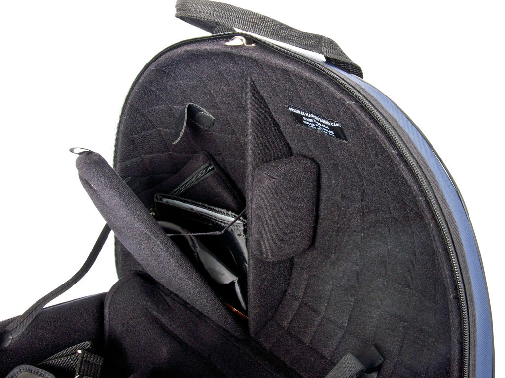 These Cases by Marcus Bonna are specifically designed for French horns. The case is made from a sturdy fiberglass shell covered in durable nylon. The inside is covered with 1cm thick foam and a soft fabric lining. A French horn will fit perfectly with two belts, pouch for the bell and 2 modular blocks.