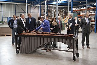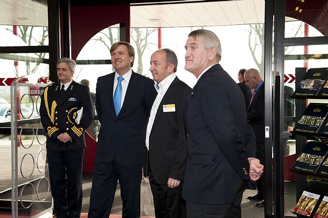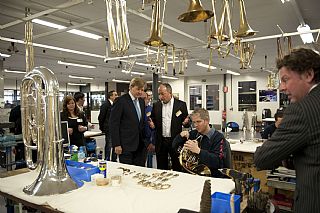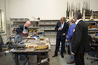 This company won the King Willem I Award in 2010 in the small and medium-sized enterprise category. Adams manufactures wind instruments and percussion that are sold worldwide. Upon arrival, the Prince was musically welcomed by the company's 'house orchestra' and then received an extensive tour of the company, where he also spoke with guests and employees. Adams develops its musical instruments in close cooperation with top musicians from around the world. From its headquarters in Ittervoort, Adams exports 98% of its production. The business award is presented biennially by the King Willem I Foundation, of which the Prince has been honorary chairman since 2002. Nominated companies are judged on courage, decisiveness, sustainability, perseverance, and innovation. The foundation and the award were established in 1958 by De Nederlandsche Bank and several organizations linked to the business community. The foundation’s objective is to provide new impulses to the national economy and thereby enhance the image of Dutch business.