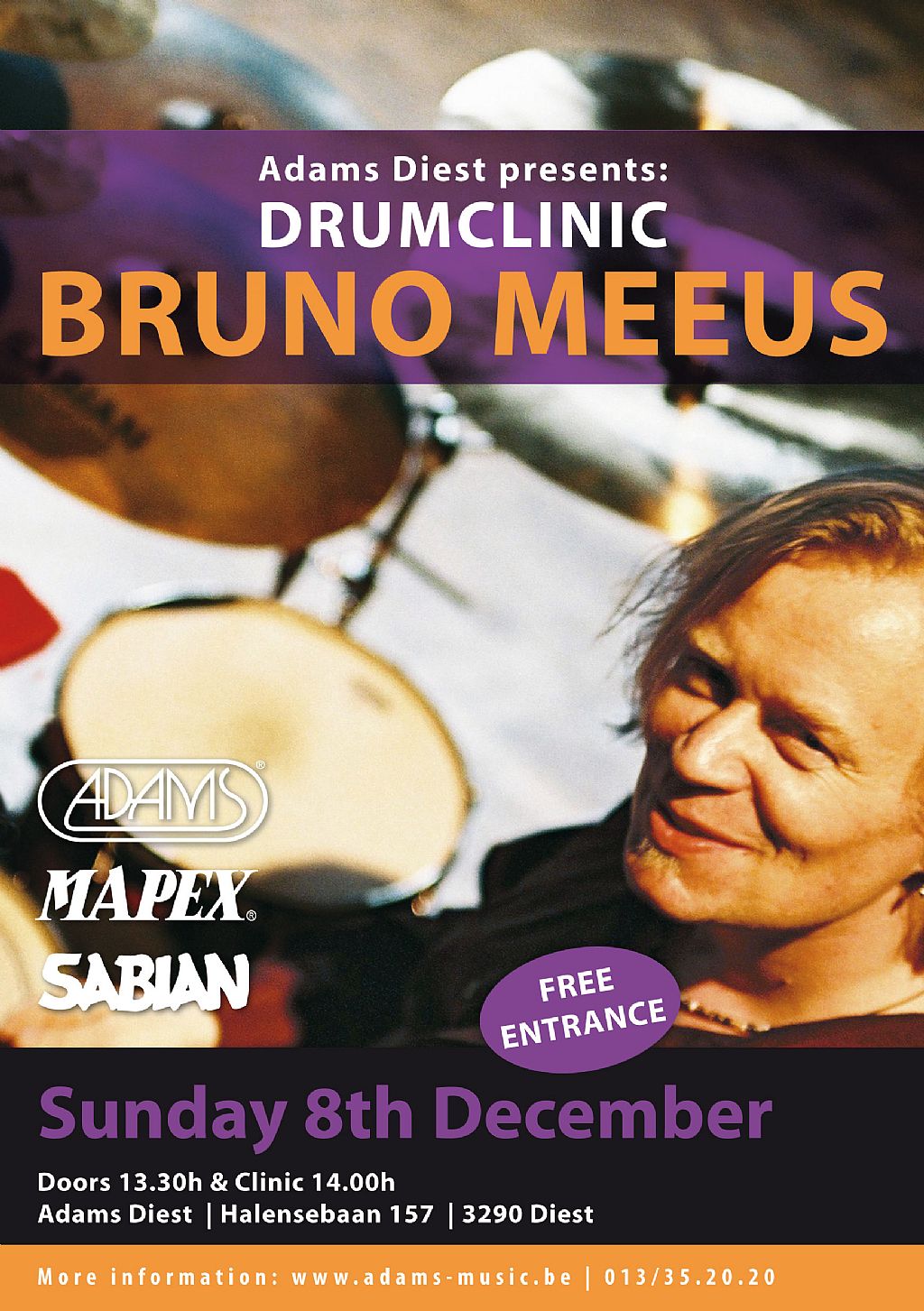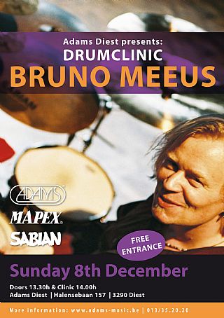 Drumclinic BRUNO MEEUS op 8 december bij Adams Diest !