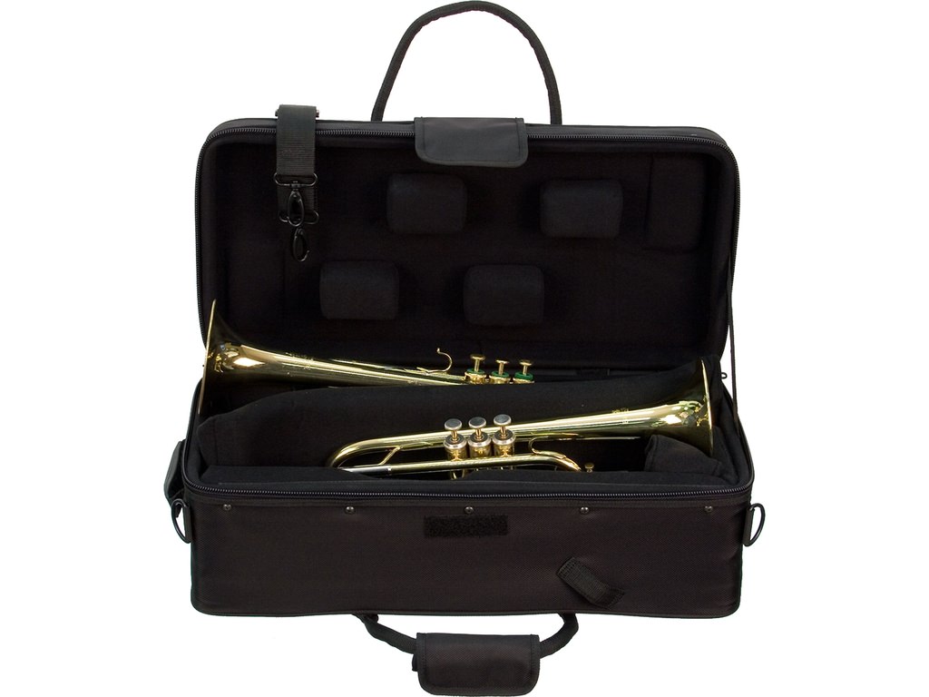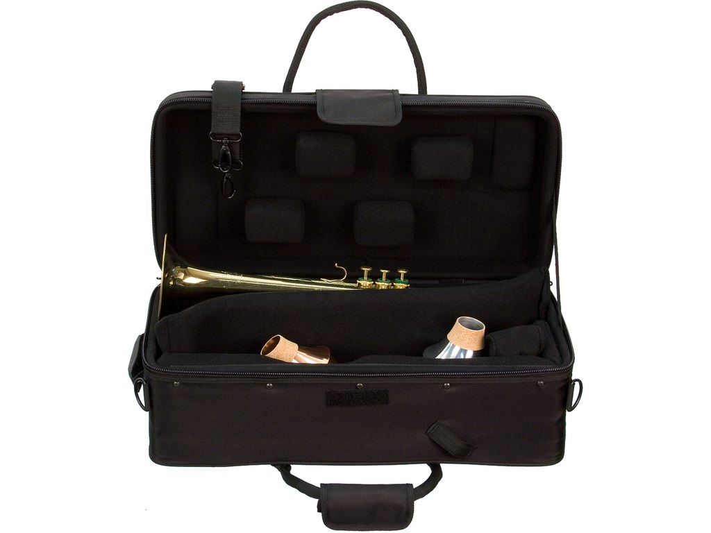 The Protec IP301D Double Horn IPAC Case is designed to protect two trumpets. The bag has thick padding and a velvet lining on the inside that protects your Flugelhorn/trumpet. A detachable shoulder strap is included with the bag to make it easier to carry. The bag is made of weather resistant nylon and has a pocket made to be easily organisable for accessories.