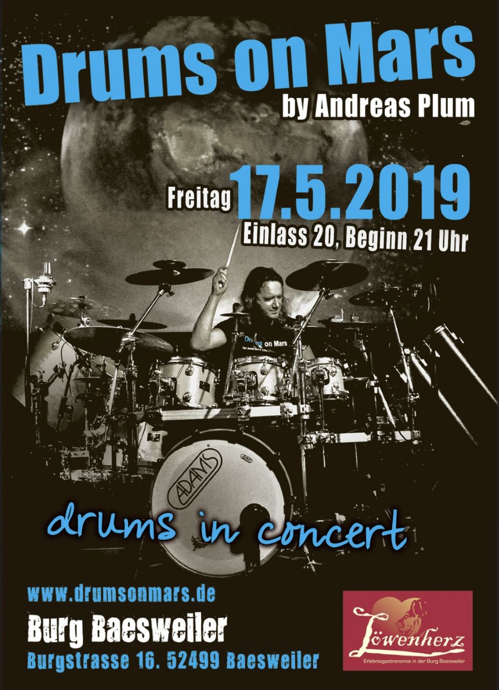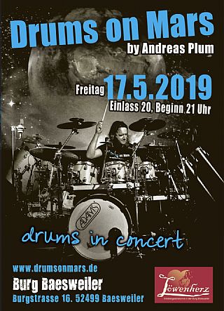 Onze Duitse Endorser Andreas Plum's "Drums on Mars" is sinds 2013 een druk bezocht drumspektakel in Duitsland. Aankomende vrijdag 17-5-2019 vindt de 6e editie plaats in Baesweiler Duitsland. Voor de liefhebbers van symphonisch drumgeweld een absolute must!