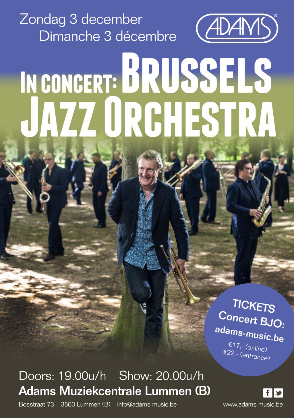 Onze nieuwe winkel in Lummen is er binnenkort klaar voor, we houden jullie op de hoogte van de exacte verhuisdatum. Bij deze willen we u alvast uitnodigen voor het openingsconcert op 3 december bij Adams Lummen (Bosstraat 73) door het fantastische BRUSSELS JAZZ ORCHESTRA. Solist is niemand minder dan BERT JORIS!