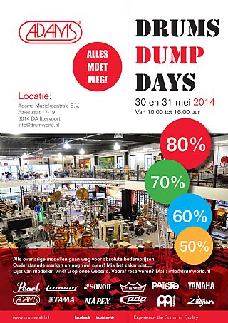 Alles moet weg! Kortingen oplopend tot 80% van 10:00 tot 16:00 bij Adams Drumworld in Ittervoort