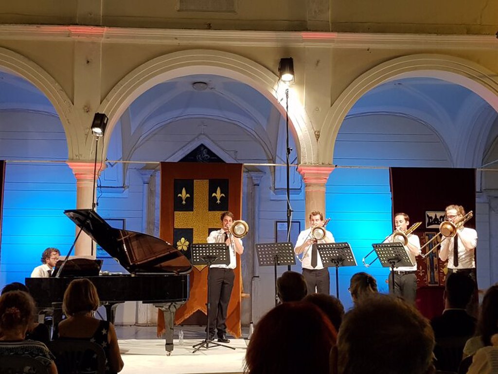Crossbones Trombones is een professioneel muziekensemble waar 5 muzikanten elkaar vonden om hun instrument, de trombone, in the picture te zetten. 4 klassiek geschoolde muzikanten gecombineerd met een jazz geschoolde muzikant leverde al snel vuurwerk op en brengt heel wat mogelijkheden naar repertoire. Naast klassiek werk voor trombone kwartet brengen ze ook originele versies van film, pop, rock en cross over muziek met 5. Al deze muziek bundelden ze samen in 1 voorstelling die de naam “slide’n five” kreeg. Op zondag 13 september kunt u hen bewonderen bij Adams Lummen, bovenverdieping. Gratis inkom!